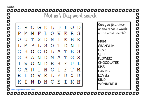 Mother's day word search. Vocabulary words can use common letters. Make a word search from a reading assignment make a word search from a list of words make a crossword puzzle. We strongly suggest you verify a mother's day puzzle meets your standards before using it in a class. You know that i love a good word search.